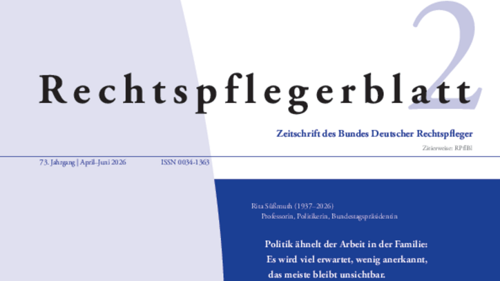 Die neue Ausgabe des Rechtspflegerblattes ist online und befindet sich im Versand. Unter anderem lesen Sie in dieser Ausgabe: